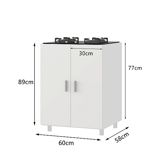 ארון שירות לכיריים בילד אין בגוון לבן נקי, מתאים לכיריים גז ואינדוקציה במידות סטנדרט. הארון מספק פתרון אחסון נוח ויעיל לכל בית, וכולל שתי דלתות בתחתית עם מדף פנימי לאחסון נוסף. הארונית עומדת על רגליים ומספקת יציבות מירבית. המוצר מגיע במידות: גובה 89 ס”מ, רוחב 60 ס”מ, ועומק 58 ס”מ. הארון תוכנן במיוחד להרכבה עצמית ומגיע עם הוראות הרכבה מפורטות ואיורים להקלת התהליך.