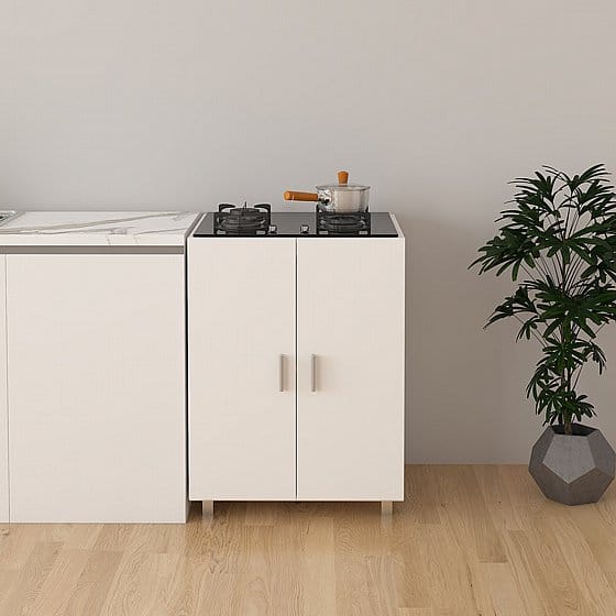 ארון שירות לכיריים בילט אין בגוון לבן, דגם דקטון DAKTON מבית סטאר שופ STAR SHOP. ארונית מעוצבת, יציבה וחזקה, עם שתי דלתות למדף אחסון, פתרון אידיאלי לכל מטבח.