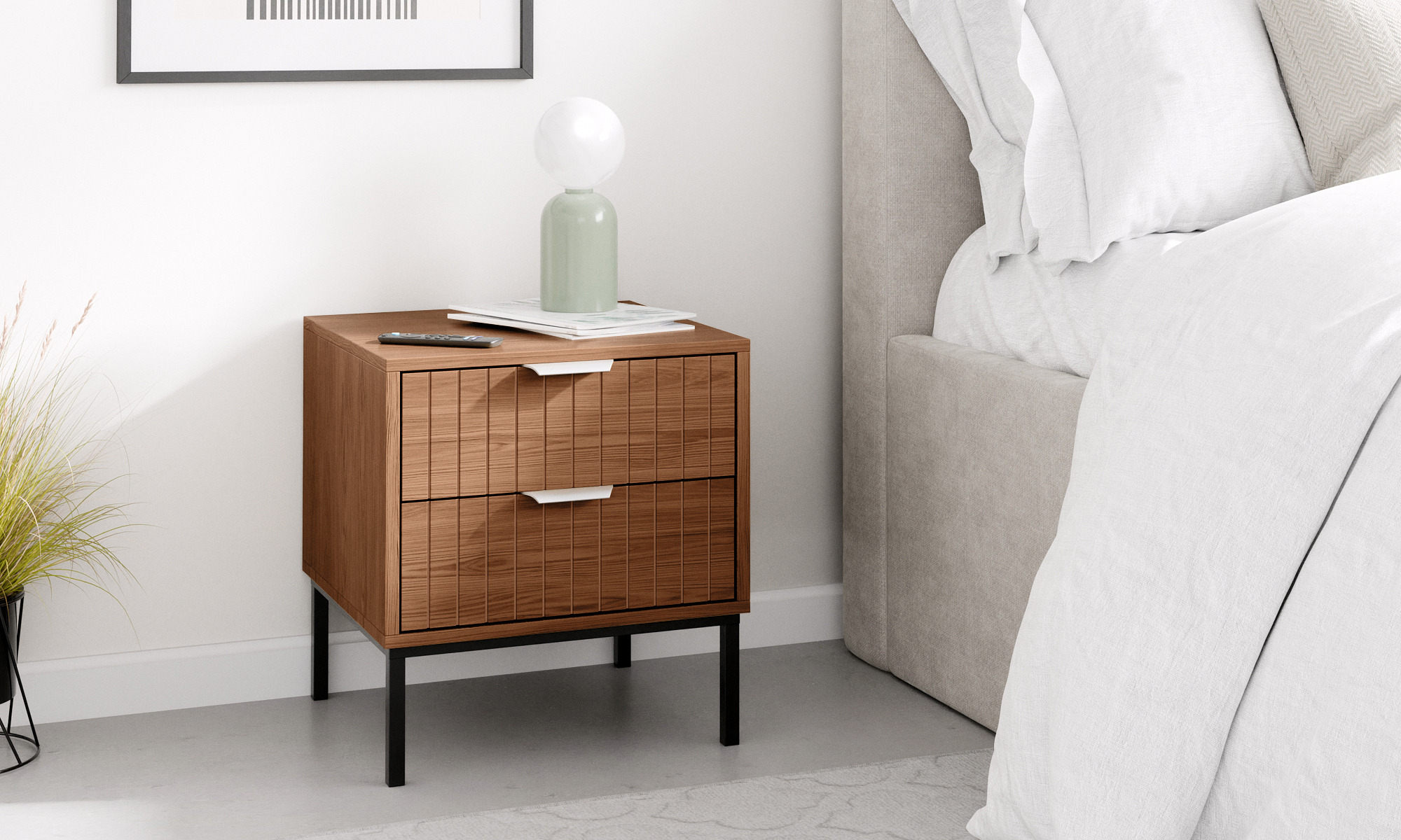 זוג שידות לילה אלגנטיות דגם פילדלפיה המשלבות מראה מודרני של מתכת ועץ במגוון צבעים לבחירה