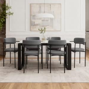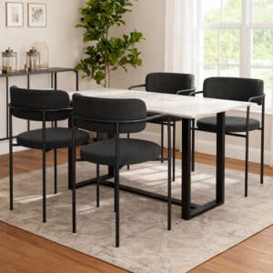 המראה המעוגל והקליל עם שלדת מתכת שחורה וקווים גיאומטריים עדינים משתלב באופן מושלם בפינות אוכל מודרניות חללים משרדיים או אזורי אירוח יוקרתיים