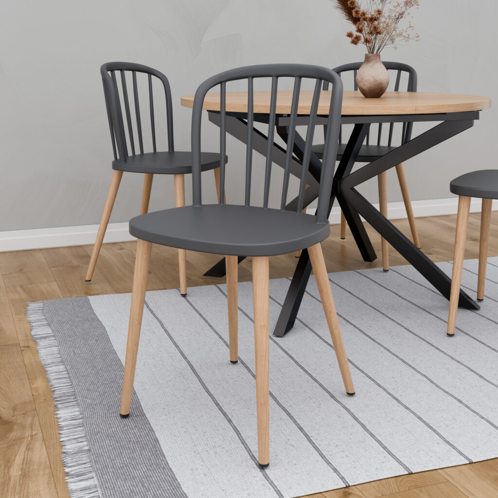 רגלי מתכת בציפוי דמוי עץ יוקרתי ומושב פלסטיק איכותי