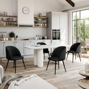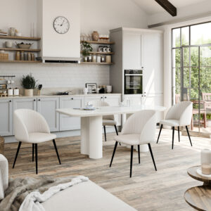 הכירו את כיסא פינת האוכל שישדרג לכם את חוויית הארוחות : שילוב מושלם של נוחות עיצוב מודרני בבד בוקלה יוקרתי בקווים נקיים ואלגנטיים בסגנון מודרני ויוקרתי