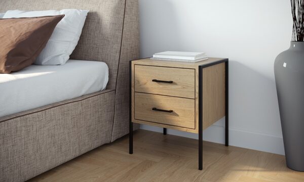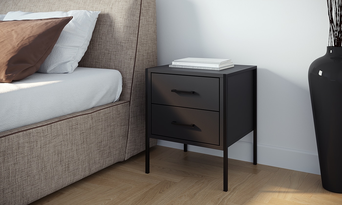 שידת לילה אלגנטית דגם בארי המשלבת מראה מודרני של מתכת ועץ במגוון צבעים לבחירה