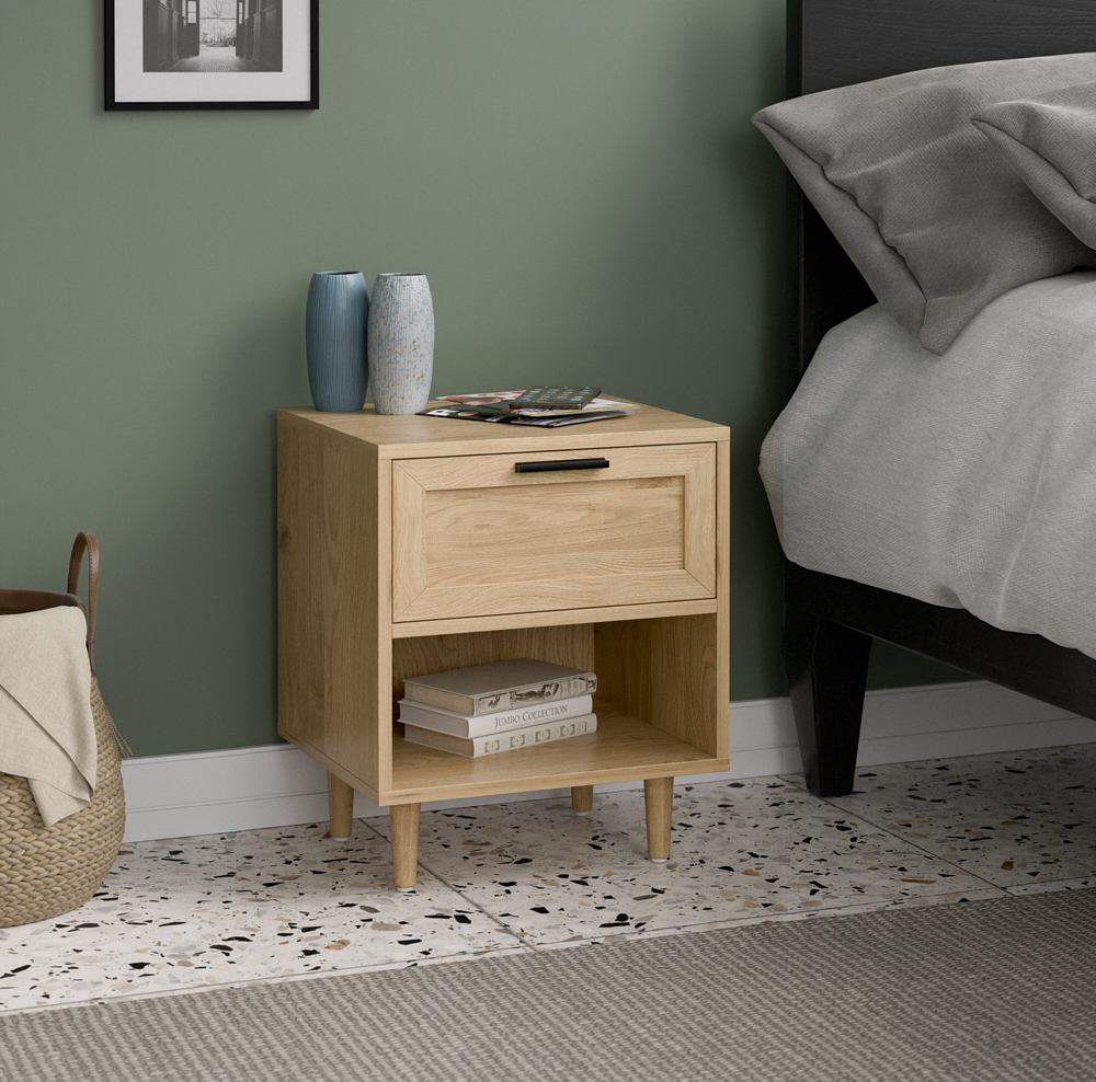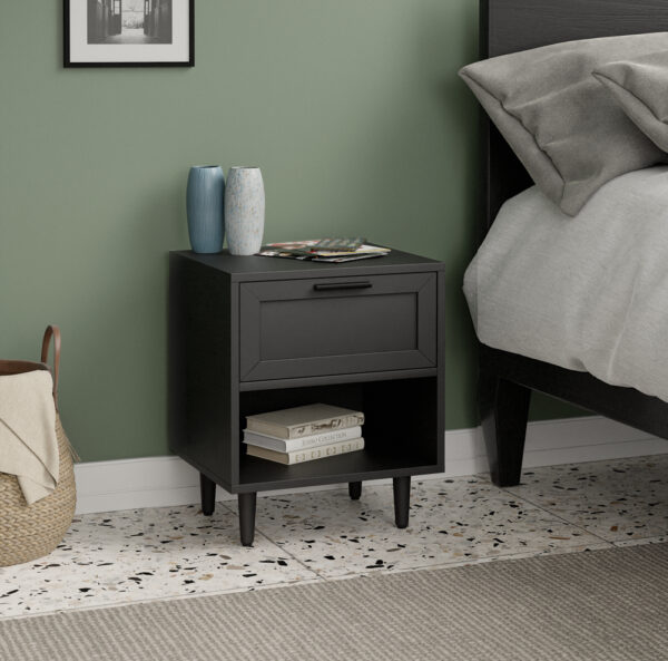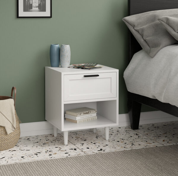 שידת לילה דגם צ’לסי המשלבת מגירה ומדף בעל חלל אחסון בשלושה צבעים מודרניים לבחירה