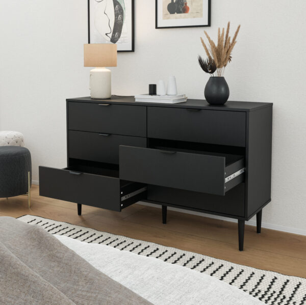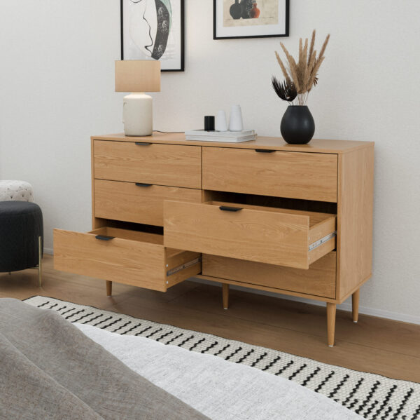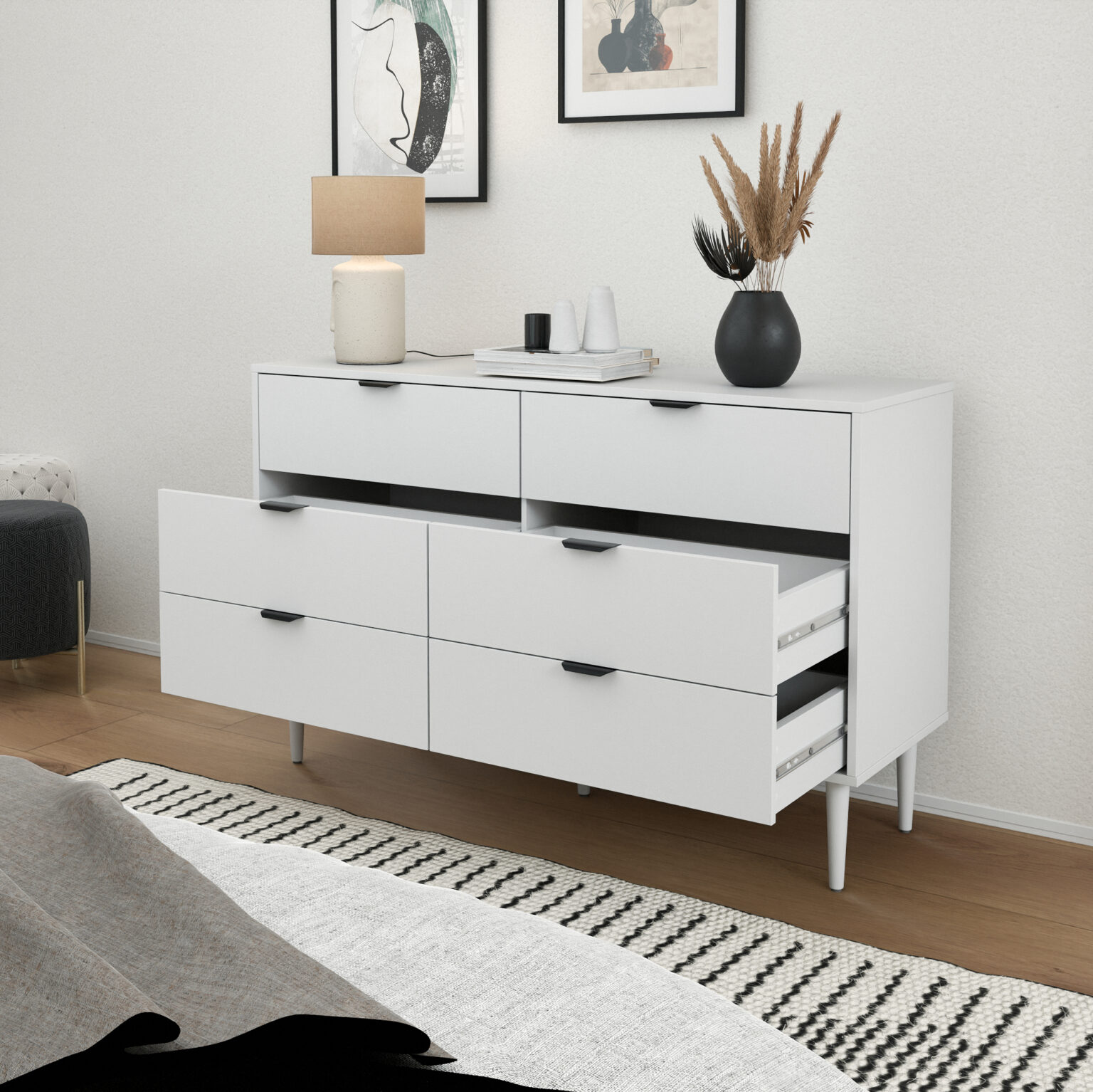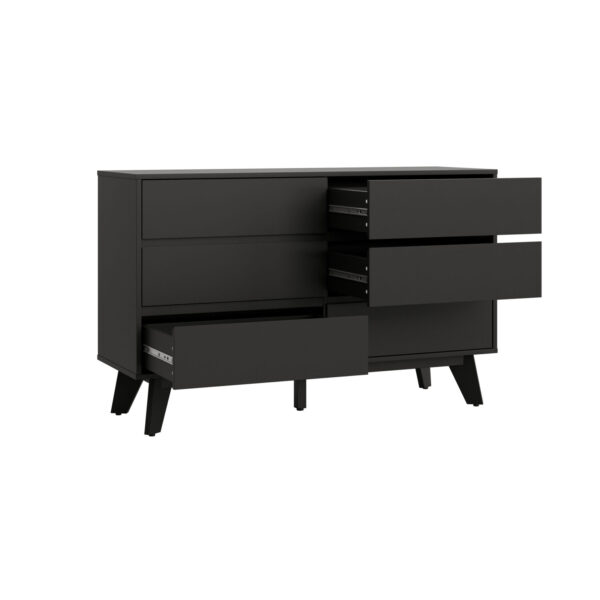 שלבו פונקציונליות עם נוכחות עיצובית בולטת – הקומודה הזו מציעה שישה תאי אחסון נוחים , מבנה עמיד ורגליים חזקות ומוגבהות לניקיון קל ונראות אוורירית.
